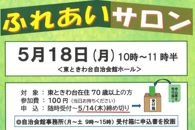 新着履歴情報 ☆新着履歴の表示をしています。 新着履歴情報 回覧板・お知らせ 自治会 4月回覧 ゴールデンウイーク休館のお知らせ 自治会 3月第4週・回覧 東ときわ台だより 3月号 2026年度【再生資源回収日程表】 自治会活動・行事 公園・緑道等の一斉清掃(クリーン作戦)のお知らせ いきいき百歳体操 4月日程 いきいき百歳体操 3月日程 いきいき百歳体操 2月日程 いきいき百歳体操 1月日程 みんなの広場(新着情報) 「第十回 高山右近・志野花嫁行列」のお知らせ 東ときわ台小学校 閉校イベント 第59回笑雲cafe「やってみたい」が まち を動かす ニセ警察詐欺が急増 ー やってみよう!ニセ警察詐欺の仮想体験 クリスマスイルミネーションを点灯🎄 とんど焼き🎍 のお知らせ 高齢者とお薬について いきいき百歳体操 12月日程 いきいき百歳体操 11月日程 福祉の広場(新着情報) 4月 ふれあいサロン「リコーダー演奏」を開催 3月 ふれあいサロン「あの歌この歌♪歌いましょう」を開催 ふれあいサロン 4月お知らせ 2月 ふれあいサロン「消費者問題ミニ講座」を開催 ふれあいサロン 3月お知らせ SCの広場(新着情報) 4月15日(水)4丁目公園の清掃を行いました 映画観賞会「だまし絵の牙」5月12日(火)豊寿荘で開催 SC東ときわ台「4月号」会報掲載 映画観賞会「春の雪」4月14日(火)豊寿荘で開催 SC東ときわ台会報「3月号」会報掲載