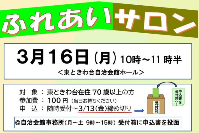 新着履歴情報 ☆新着履歴の表示をしています。 新着履歴情報 回覧板・お知らせ 自治会 2月回覧 東ときわ台だより 令和8年1月号 自治会 令和8年1月回覧 自治会 12月回覧 クリスマスイルミネーションを点灯🎄 自治会活動・行事 いきいき百歳体操 3月日程 いきいき百歳体操 2月日程 いきいき百歳体操 1月日程 いきいき百歳体操 12月日程 いきいき百歳体操 11月日程 みんなの広場(新着情報) 「第十回 高山右近・志野花嫁行列」のお知らせ 東ときわ台小学校 閉校イベント 第59回笑雲cafe「やってみたい」が まち を動かす ニセ警察詐欺が急増 ー やってみよう!ニセ警察詐欺の仮想体験 クリスマスイルミネーションを点灯🎄 とんど焼き🎍 のお知らせ 高齢者とお薬について いきいき百歳体操 12月日程 いきいき百歳体操 11月日程 福祉の広場(新着情報) ふれあいサロン 3月お知らせ 1月 「新年ふれあい会食」を開催 ふれあいサロン 2月お知らせ 12月 ふれあいサロン「リコーダーアンサンブル」を開催 新年ふれあい会食のご案内 SCの広場(新着情報) SC東ときわ台会報「2月号」会報掲載 映画観賞会「たそがれ清兵衛」 2月10日(火)豊寿荘で開催 SC東ときわ台「令和8年1月号」会報掲載 12月17日(水)3丁目公園清掃を行いました 映画観賞会「ICHI」市 令和8年1月13日(火)豊寿荘