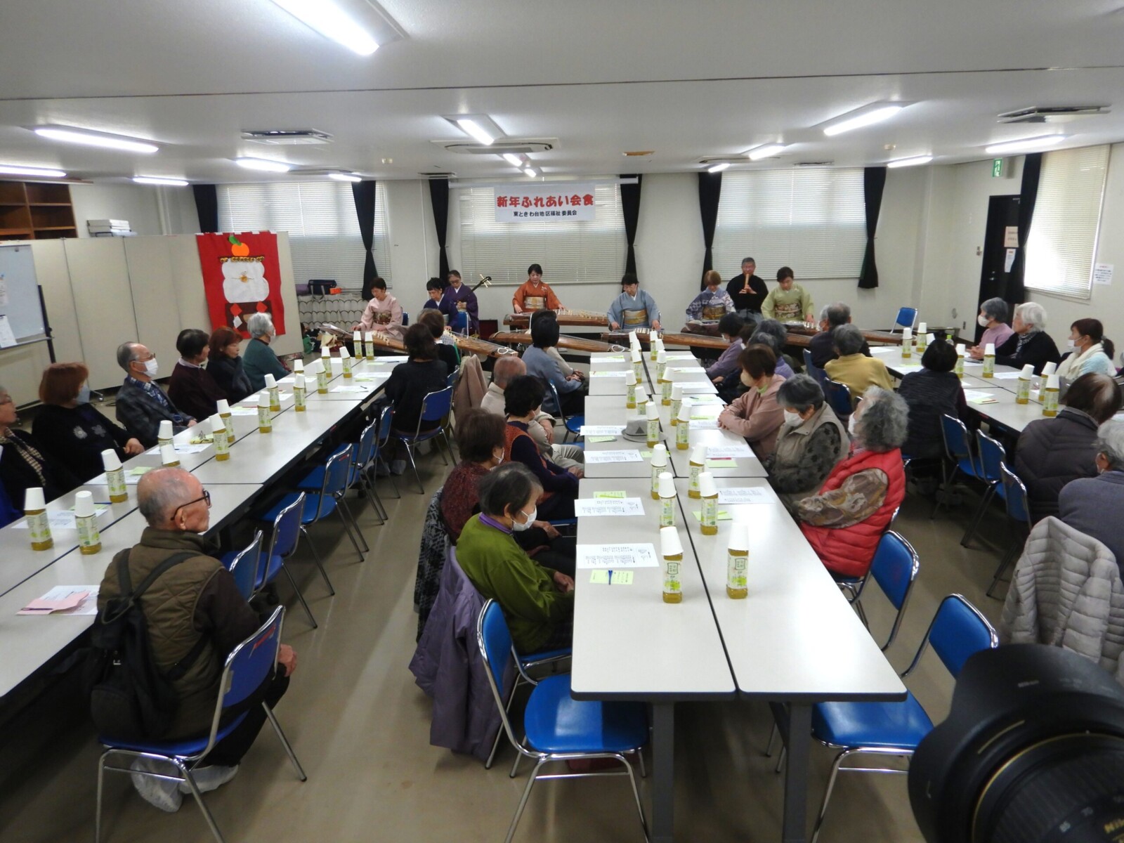 新春にふさわしく『千鳥の会』による琴演奏をたっぷり聴いて頂いた後に会食へと進み、ご用意した三段弁当に思わず『わぁ~美味しそう』『何から食べようかしら』とお話も弾み、またの開催を楽しみにお開きとなりました。