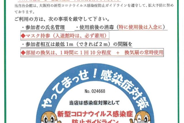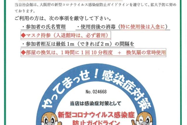 引き続き当自治会館では感染拡大予防に努めてまいります。