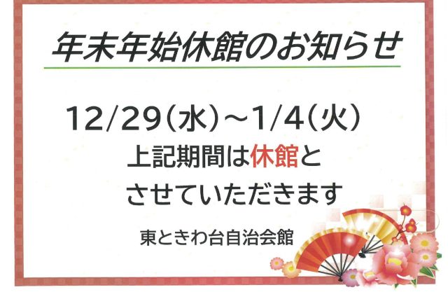 令和4年1月5日からは通常通り開館致します。 宜しくお願い致します。