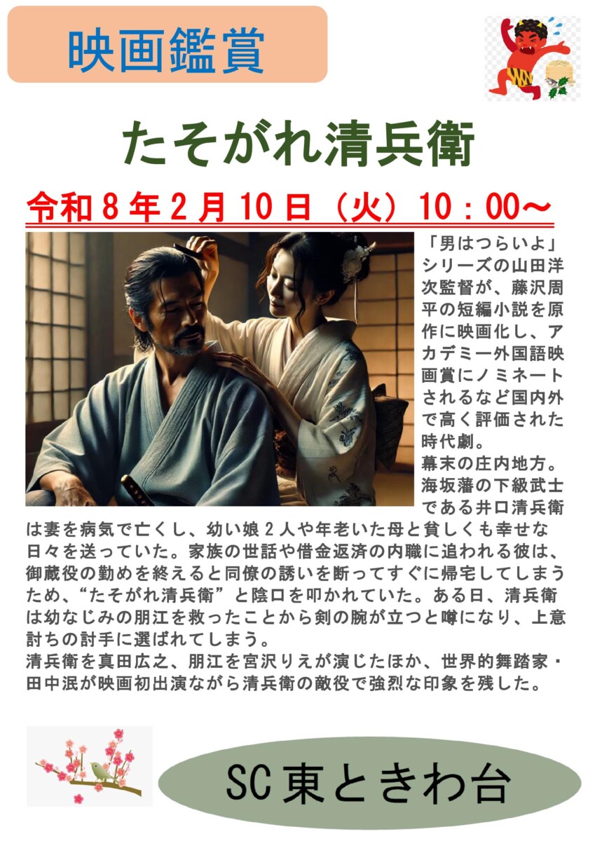映画観賞会「たそがれ清兵衛」 2月10日(火)豊寿荘で開催