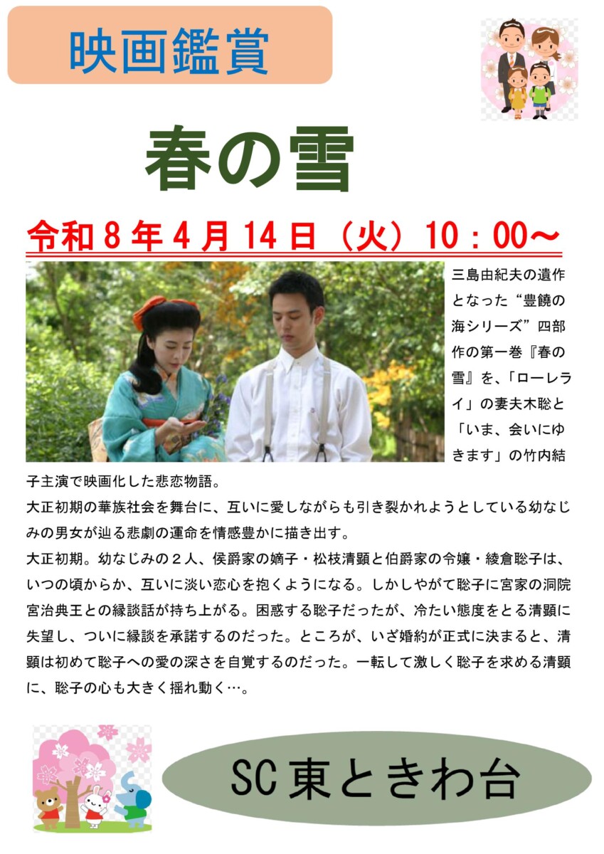 映画観賞会「春の雪」4月14日(火)豊寿荘で開催
